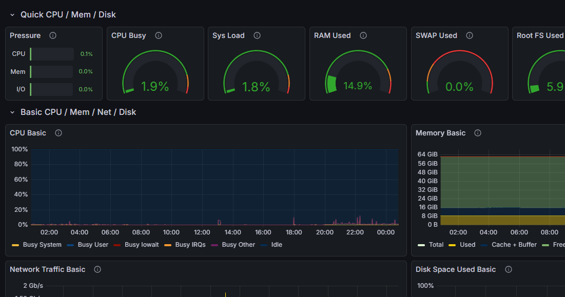 | Redis + VPN + Grafana | 16 Core / 64 GB RAM | 1 |