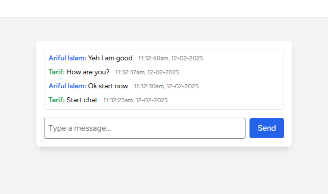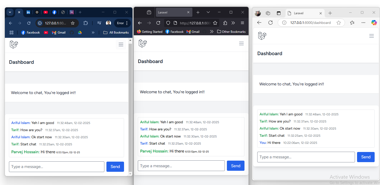</x-app-layout>After that login to application from three individual browsers, you can also use incognito mode. You will get chat screen. If everything goes well, you are good to go. If you feel this article is helpful. You can bookmark it and share. Code for this project is available here